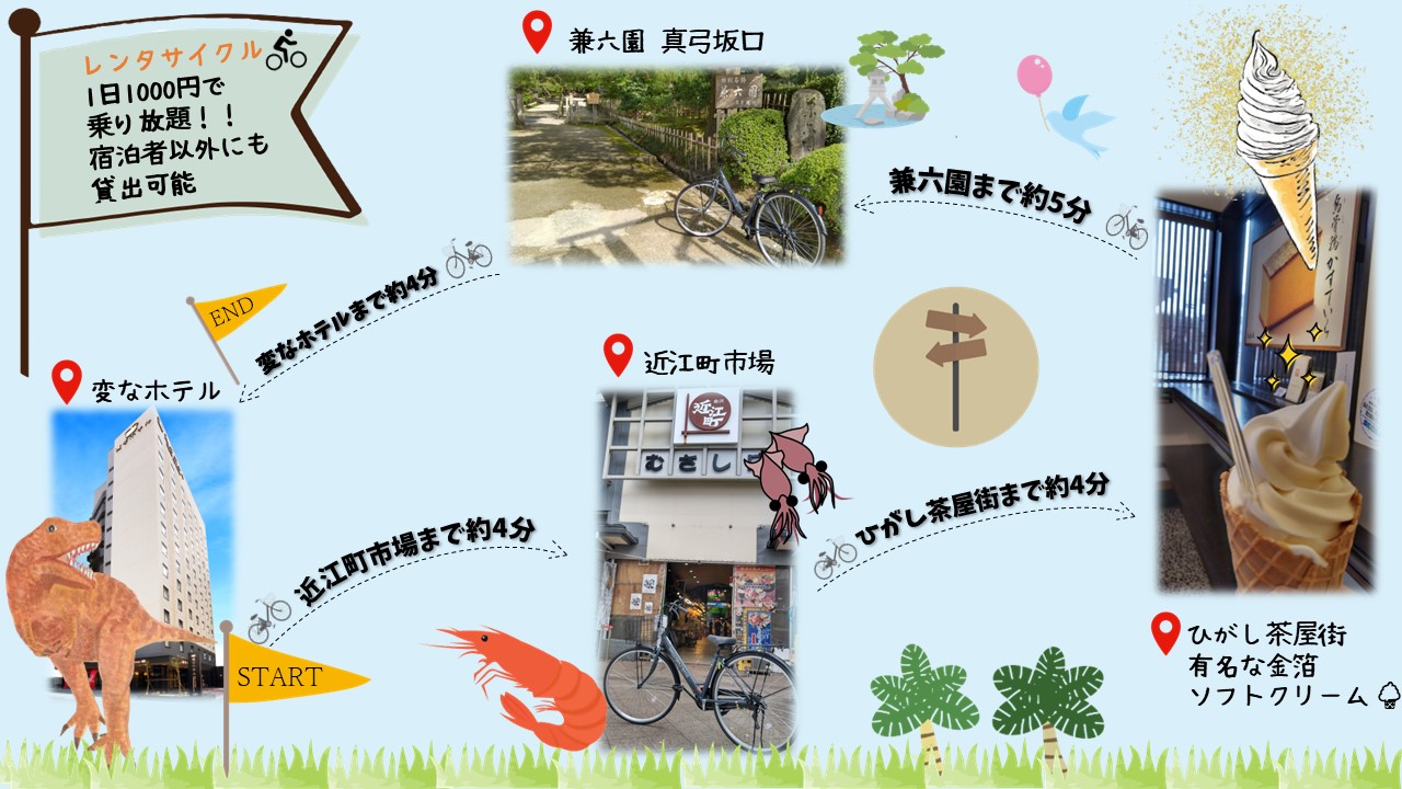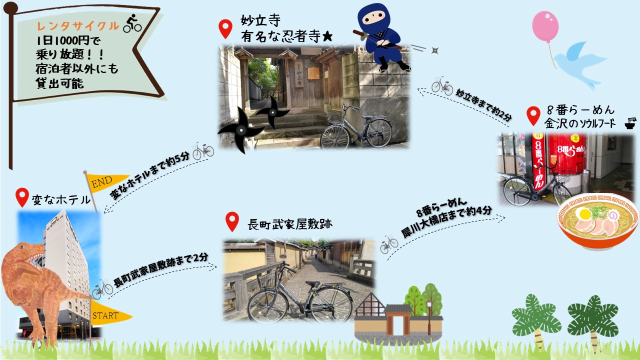 当ホテルでは、1日1000円で自転車をレンタルすることが可能でございます。