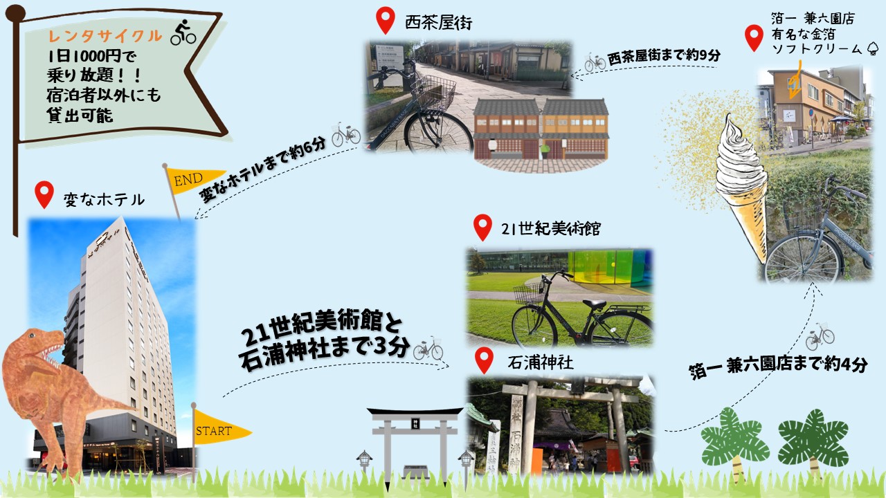 ①変なホテル金沢香林坊 ⇒ 近江町⇒ひがし茶屋街 ⇒ 兼六園 ⇒ 変なホテル金沢香林坊