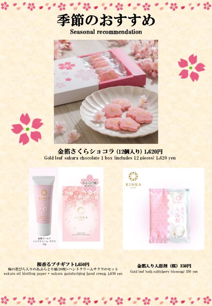 さくらショコラもございますのでぜひ大切な方へお土産としてお買い求めくださいね♪