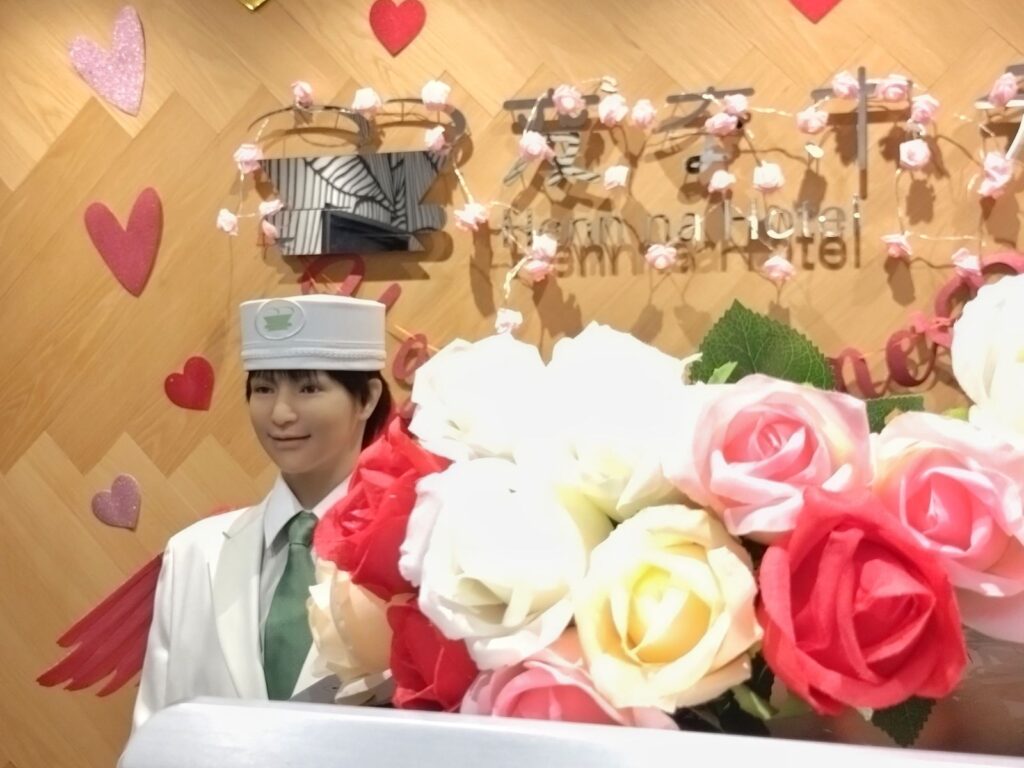 バレンタインシーズンに合わせ、ホテルフロントを模様替えしました。