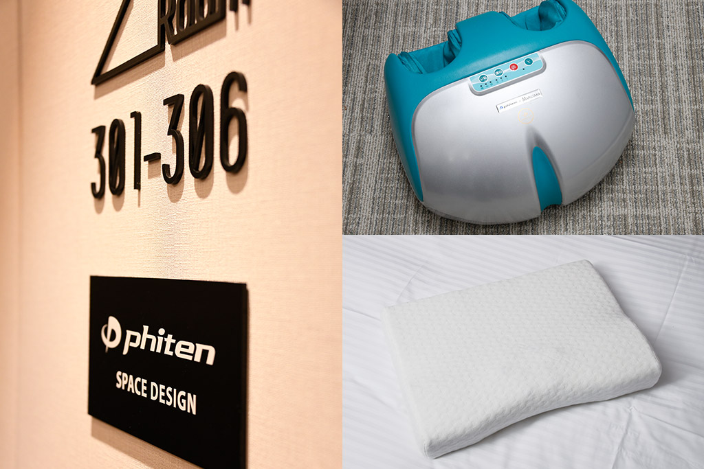 客室の壁、床、寝具などに、「アクアチタン」というファイテン社独自の特殊素材を染み込ませてあり、カラダ本来のリラックス状態に導くことをサポートする客室です。