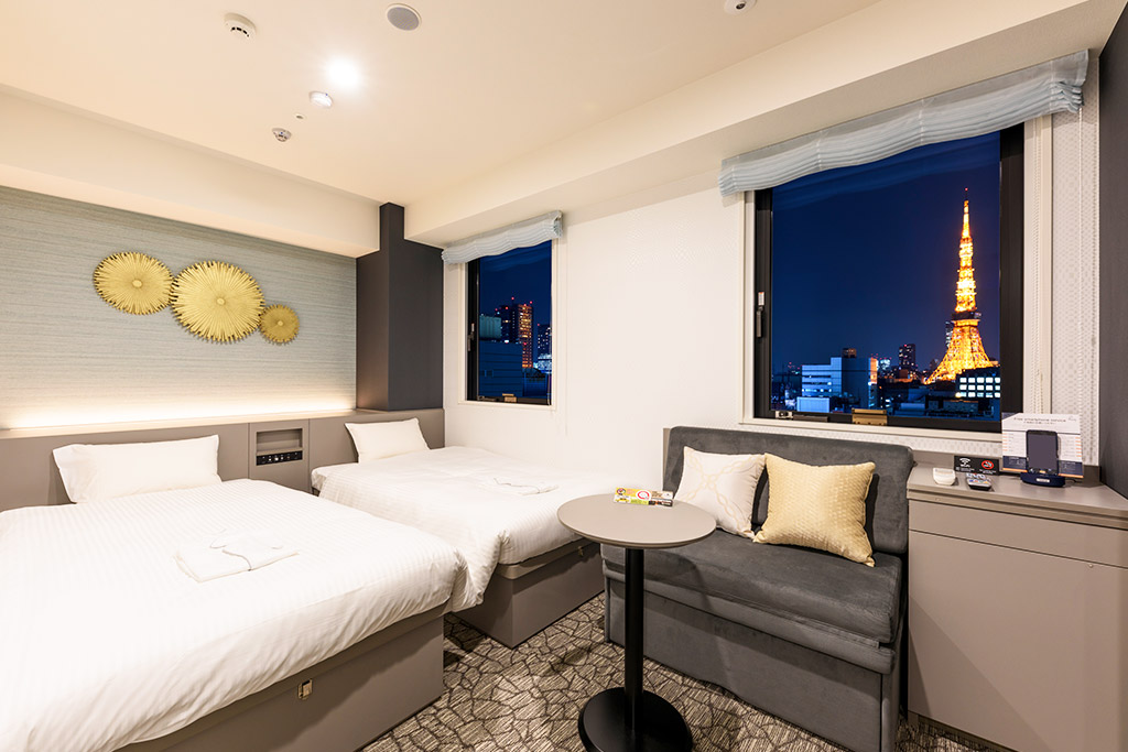 大人気美容ブランド「ReFa」の人気の「美」アイテムをホテルで体験! お部屋から東京タワーをご覧いただけるお部屋です。ソファベッドを展開し、ベッド3台でのご利用が可能です。