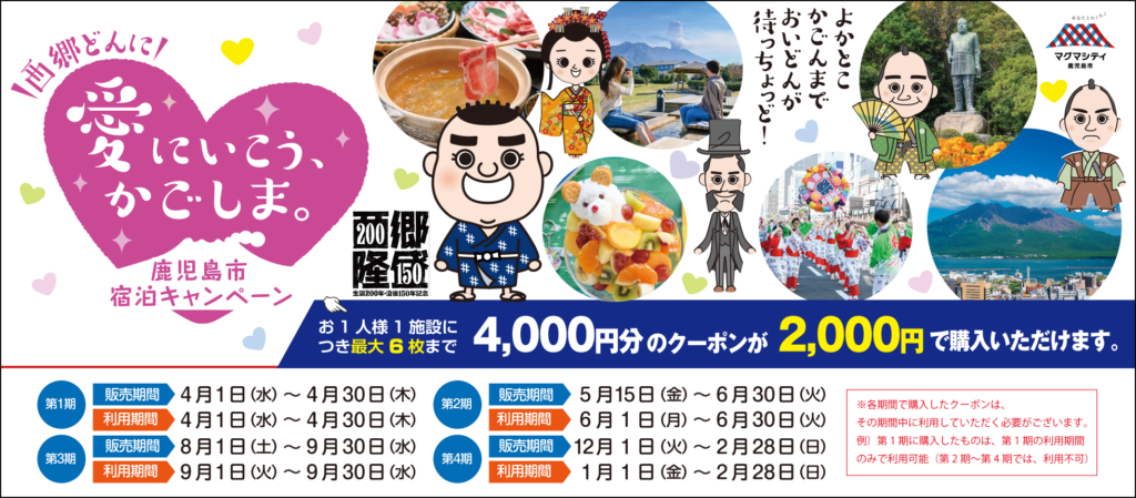 西郷どんに「愛にいこう、かごしま。」宿泊クーポン の公式ホームページをご確認ください。