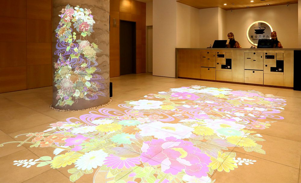 金沢の観光の中心・香林坊に位置し、兼六園や金沢21世紀美術館などにも徒歩圏内。恐竜ロボットがお出迎え、加賀友禅を模したプロジェクションマッピングによるロビー演出、水引のデザインを取り入れたレストランなど、石川県の伝統を取り入れた空間を創りました。