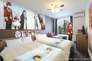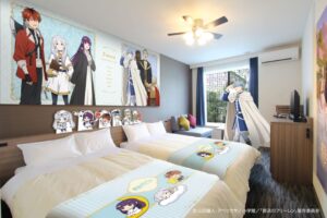 大型パネルやミニキャラパネル、フットスローなどの備品がフリーレンをコンセプトにしたお部屋となっております。