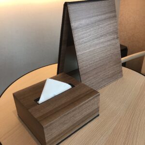 机や置き鏡、ティッシュボックスなど客室備品は木目調で