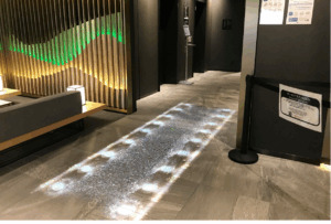 侍でチェックインすると灯籠で照らされた道がエレベーター前まで浮かび上がります。