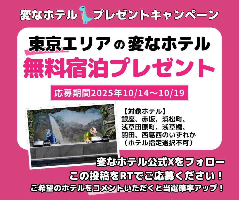 ・変なホテルの公式X(旧Twitter)のアカウントをフォローいただき、リツイートいただくこと、