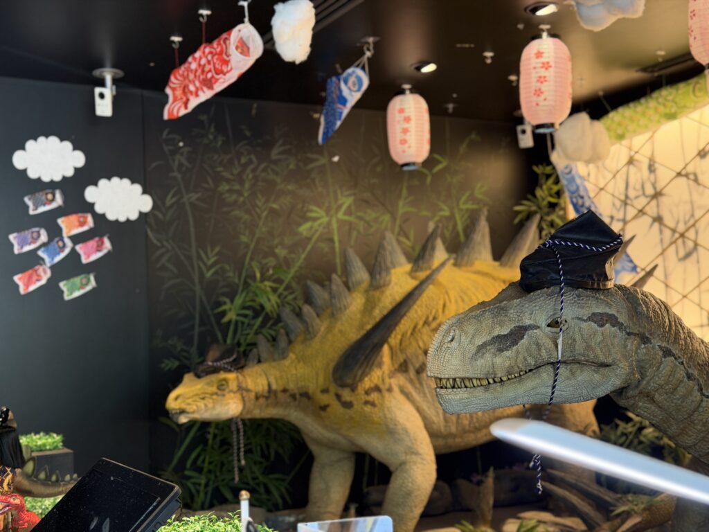 初夏の爽やかな風が心地よい季節になりましたね当ホテルのフロントも、こいのぼりが元気よく泳ぐ「端午の節句」仕様に大変身しております!フロントでは、恐竜ロボットたちと、力強い金太郎が皆様をお出迎え!金太郎といえばクマと仲良しなのが定番ですが……当館の金太郎は、なんと恐竜たちととっても仲良しなんですよこいのぼりが舞う賑やかなフロントにて、ぜひ元気いっぱいのパワーとワクワク感を感じてください♪変なホテルの季節感あふれる新しい装飾を、ぜひ見にいらしてくださいませ☆皆様にお会いできることを心より楽しみにしております!ご来館をお待ち申し上げております!